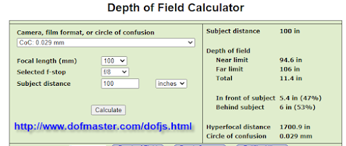 The camera should be placed exactly in the middle of the chart, and there is almost no room for error - the depth of field for 100 mm lens at F8 at 100 inch distance is just 10 inches.
